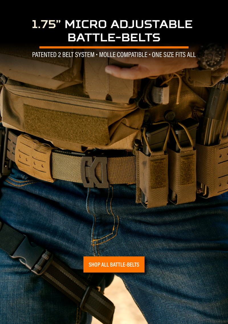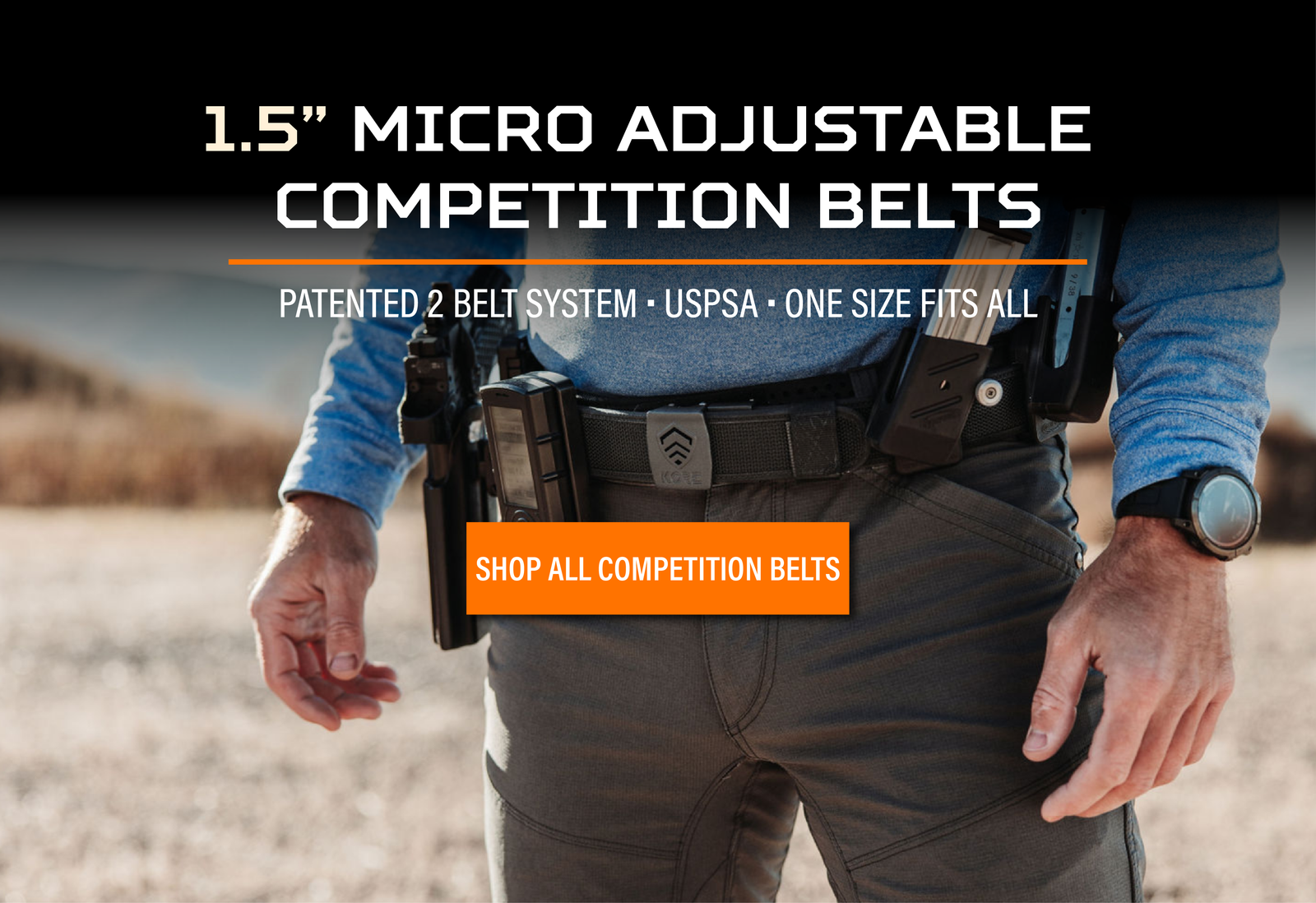 Our belts have a micro adjustable track system that allow you to precisely adjust your Kore gun belt in ¼” increments, to one of 40+ sizing points, giving you the most customized and precise fitting belt you'll ever wear. Paired with our proprietary Reinforced Power Core—stronger than steel—our gun belts eliminate sag and rollover, providing rock-solid support for any concealed carry firearm or gear.