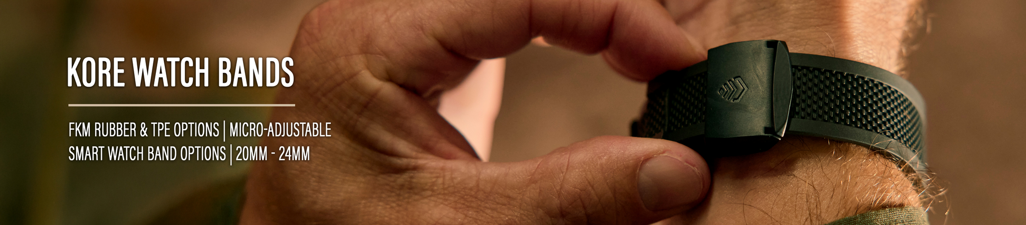 With a patented micro-adjustable design, each strap provides 20+ size positions in 1/8" increments, ensuring a perfect, custom fit for wrists between 147mm (5.75”) and 206mm (8.13”) in circumference. Finished with a marine-grade A4 stainless steel buckle and available with a 1-year manufacturer’s warranty, KORE watch bands are built to perform wherever your next mission—or adventure—takes you.