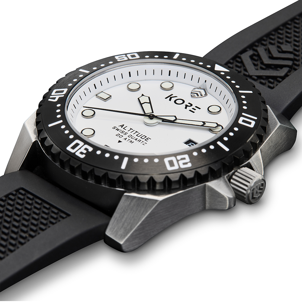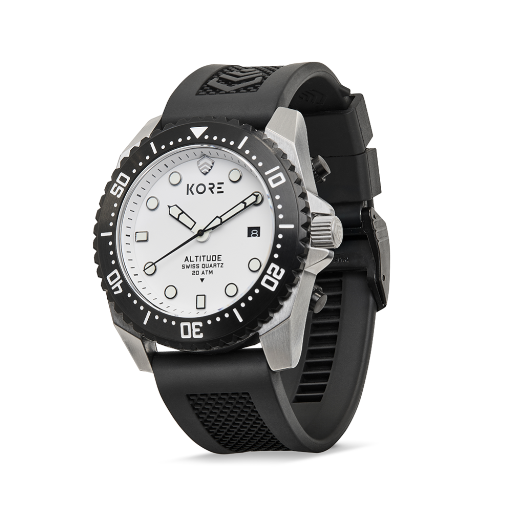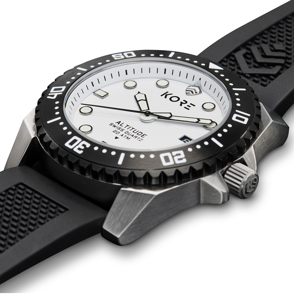 Includes: KORE Altitude Field Watch, 2 Interchangeable micro-adjustable bands (Dive & Overland Models) and Ammo Case Watch Box