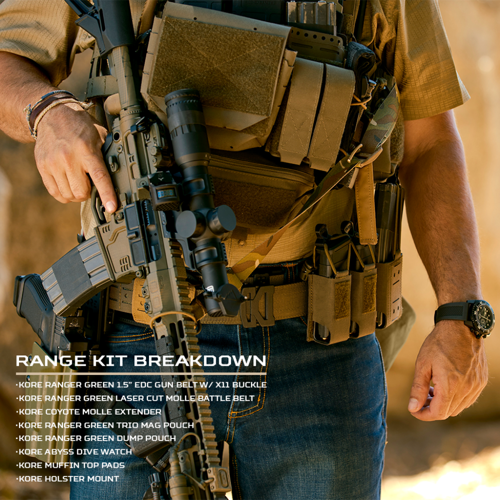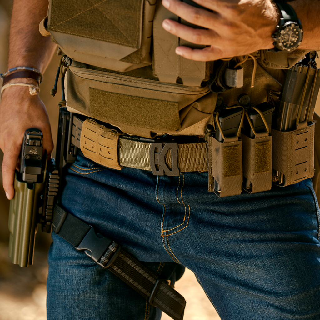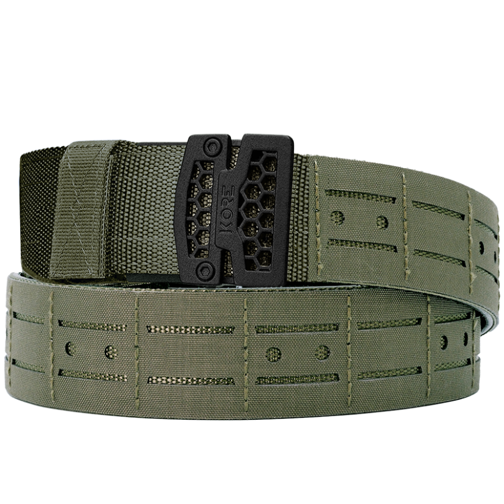 Kore Battle Belts feature a hidden track with 20+ sizing points, letting you adjust in precise 1/4" increments. Need to loosen 1/2" after a big meal or tighten up to secure your gear? Done - without ever removing or undoing the buckle. You can adjust while sitting, running, swimming, even crawling. Simply put, its the best-fitting, most durable battle belt you'll ever wear.