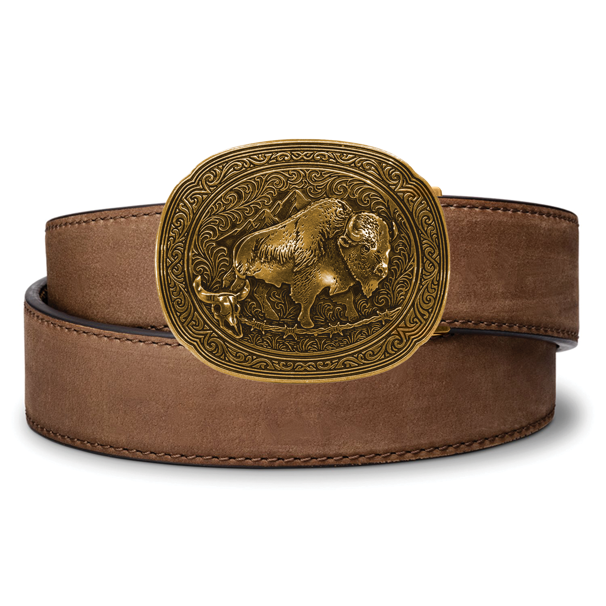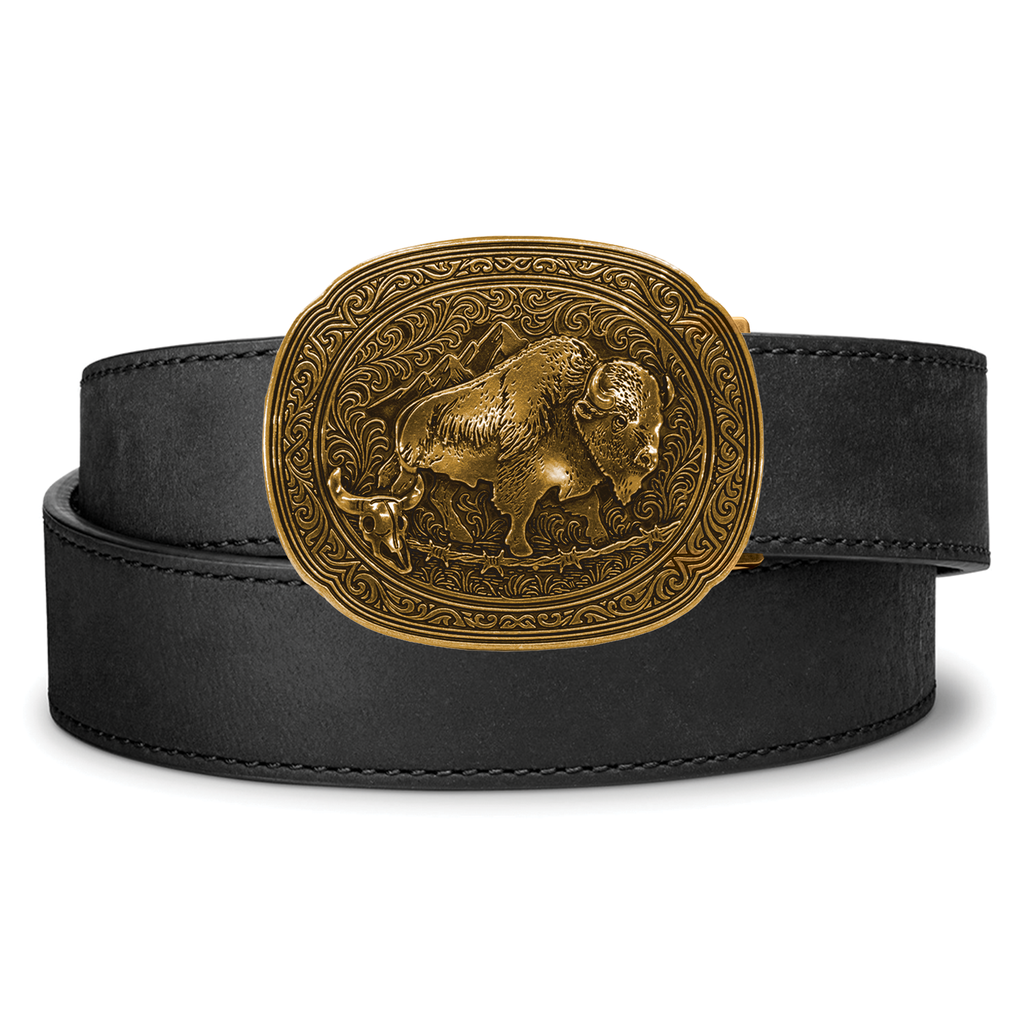 Includes: Bison Antique Brass Buckle, Buffalo Leather Reinforced Gun Belt [1.5"], Hex Wrench & Set Screws