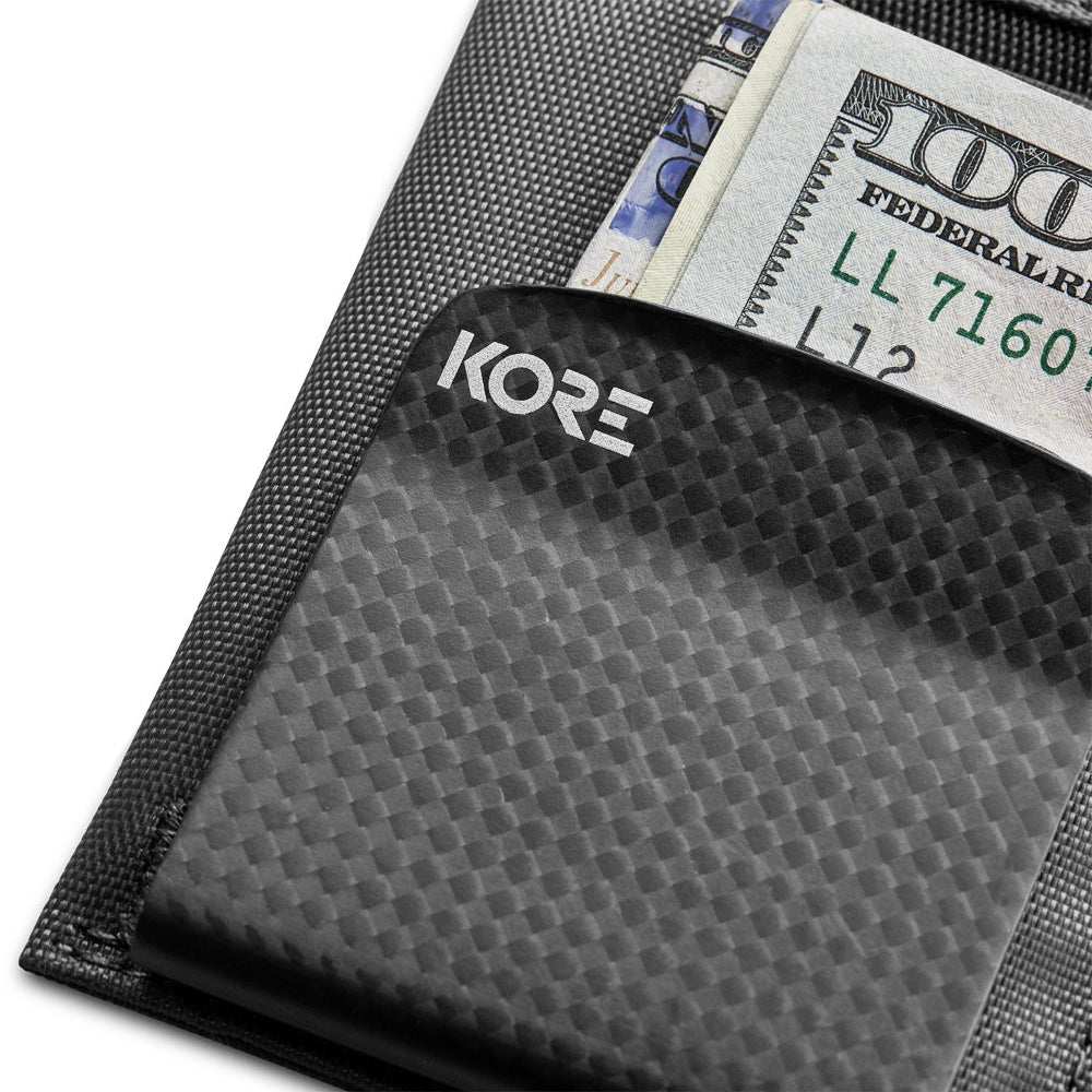 Includes: KORE Essentials Slim Gray Tactical Wallet + Carbon Fiber Money Clip