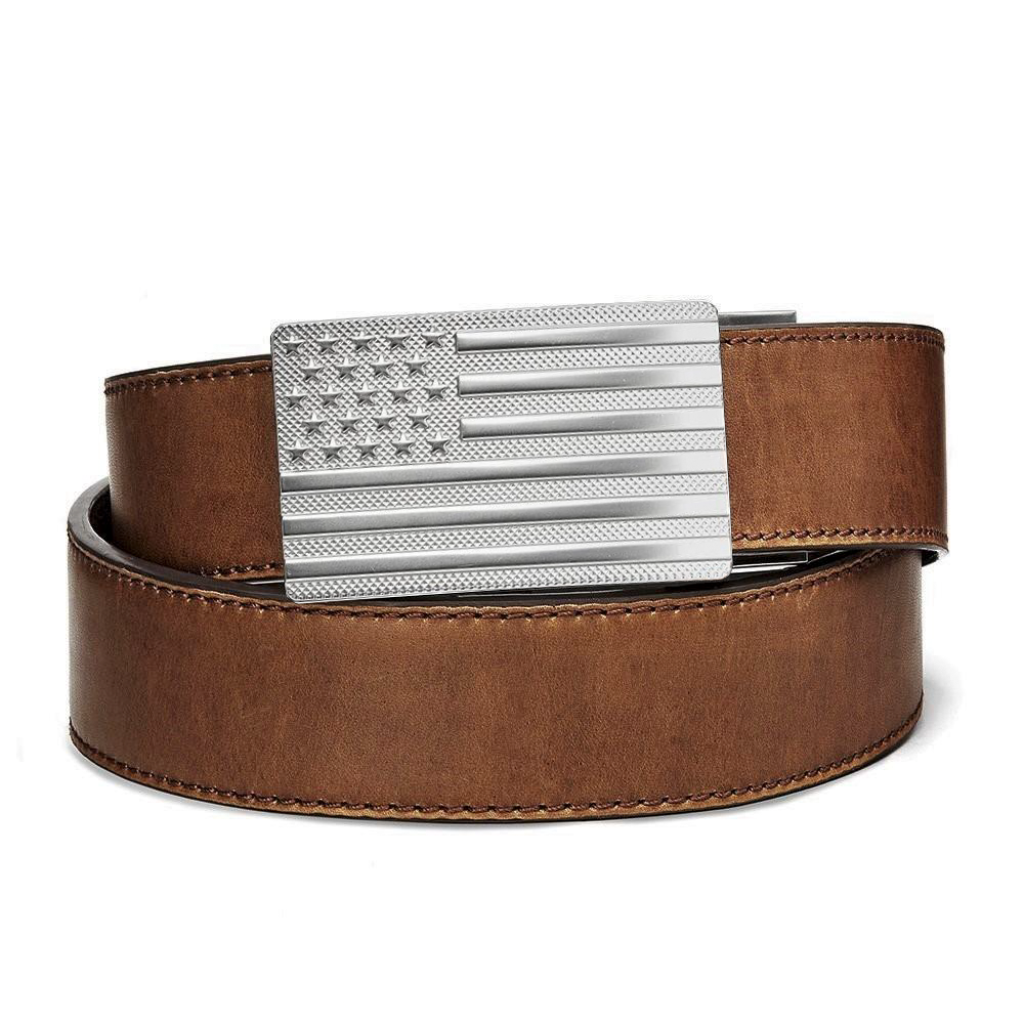 Includes: Flag Buckle, Brown Buffalo Leather Reinforced Gun Belt, Hex Wrench & Set Screws