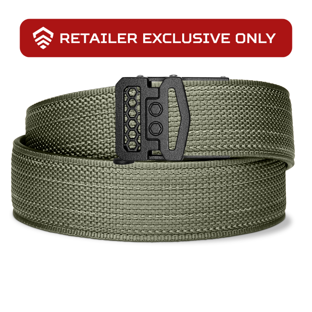 All our gun belts (leather & tactical) feature our Proprietary Reinforced Power-Core™ center. This unique blend makes our belts sturdy and stiff enough to support your firearm and gear without any sag, yet flexible enough to sit, walk, or move in all day. It's the most secure, comfortable gun belt you will ever wear.