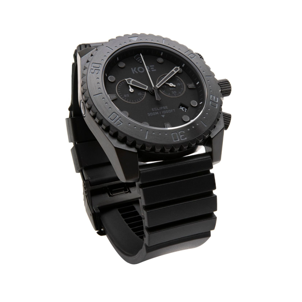 Includes: KORE ECLIPSE Swiss Chronograph Dive Watch, 2 micro-adjustable watch bands (Dive & Overland), and Ammo Case Watch Box