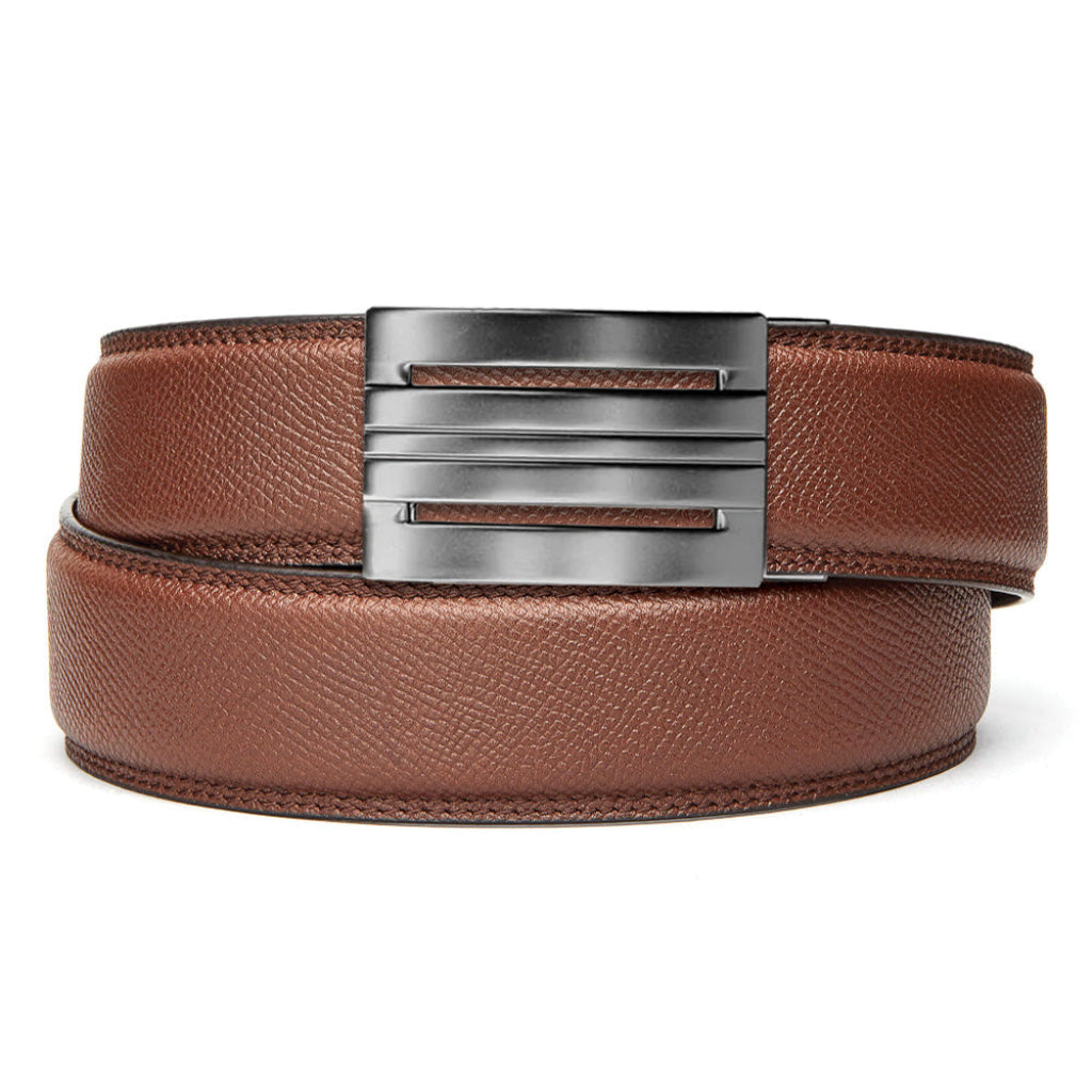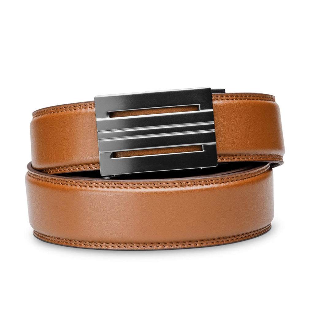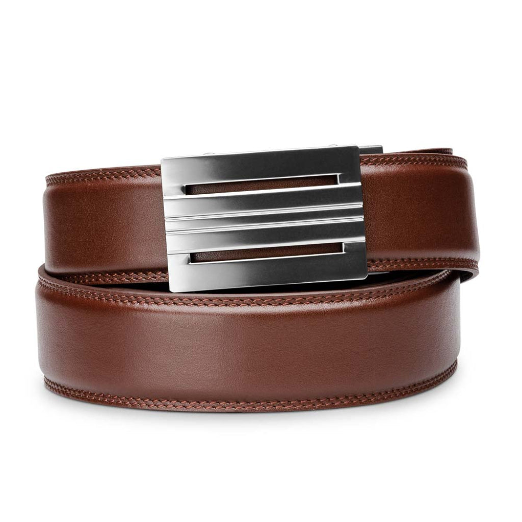 What makes Kore belts better? No more belt holes. All of our Kore belts feature a hidden, 10" track sewn into the back of the leather. This virtually indestructible track provides over 40 - one-quarter inch sizing positions to adjust to. So whether you ate too much for lunch, or maybe started exercising more, your Kore belt will zip to your exact waist size and lock in place - for the perfect fit.