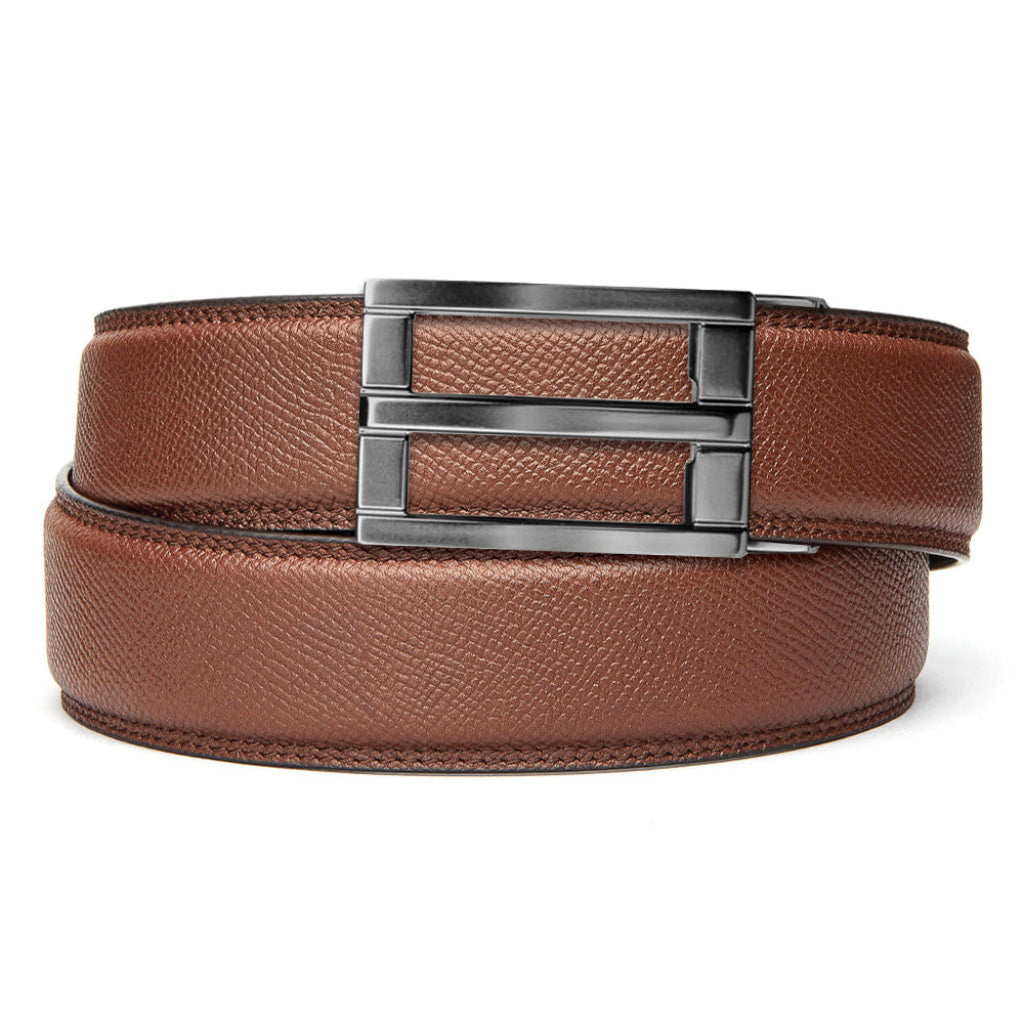 What makes Kore belts better? No more belt holes. All of our Kore belts feature a hidden, 10" track sewn into the back of the leather. This virtually indestructible track provides over 40 - one-quarter inch sizing positions to adjust to. So whether you ate too much for lunch, or maybe started exercising more, your Kore belt will zip to your exact waist size and lock in place - for the perfect fit.