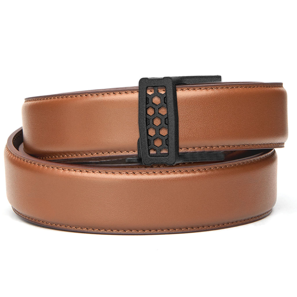 All our gun belts (leather & tactical) feature our Proprietary Reinforced Power-Core™ center. This unique blend makes our belts sturdy and stiff enough to support your firearm and gear without any sag, yet flexible enough to sit, walk, or move in all day. It's the most secure, comfortable gun belt you will ever wear.