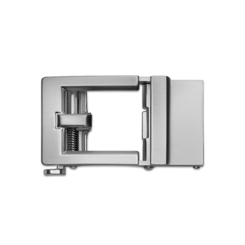 Slim dress belt buckles (3.2 cm x 6 cm) are zinc alloy (contains nickel) with brushed nickel finish. Interchangeable with Kore Slim width fashion buckles and no-hole belts. Pop the buckle off, leave on the leather and pass thru TSA airport security quick and easily. Not interchangeable with standard fashion belts (1-3/8" wide).