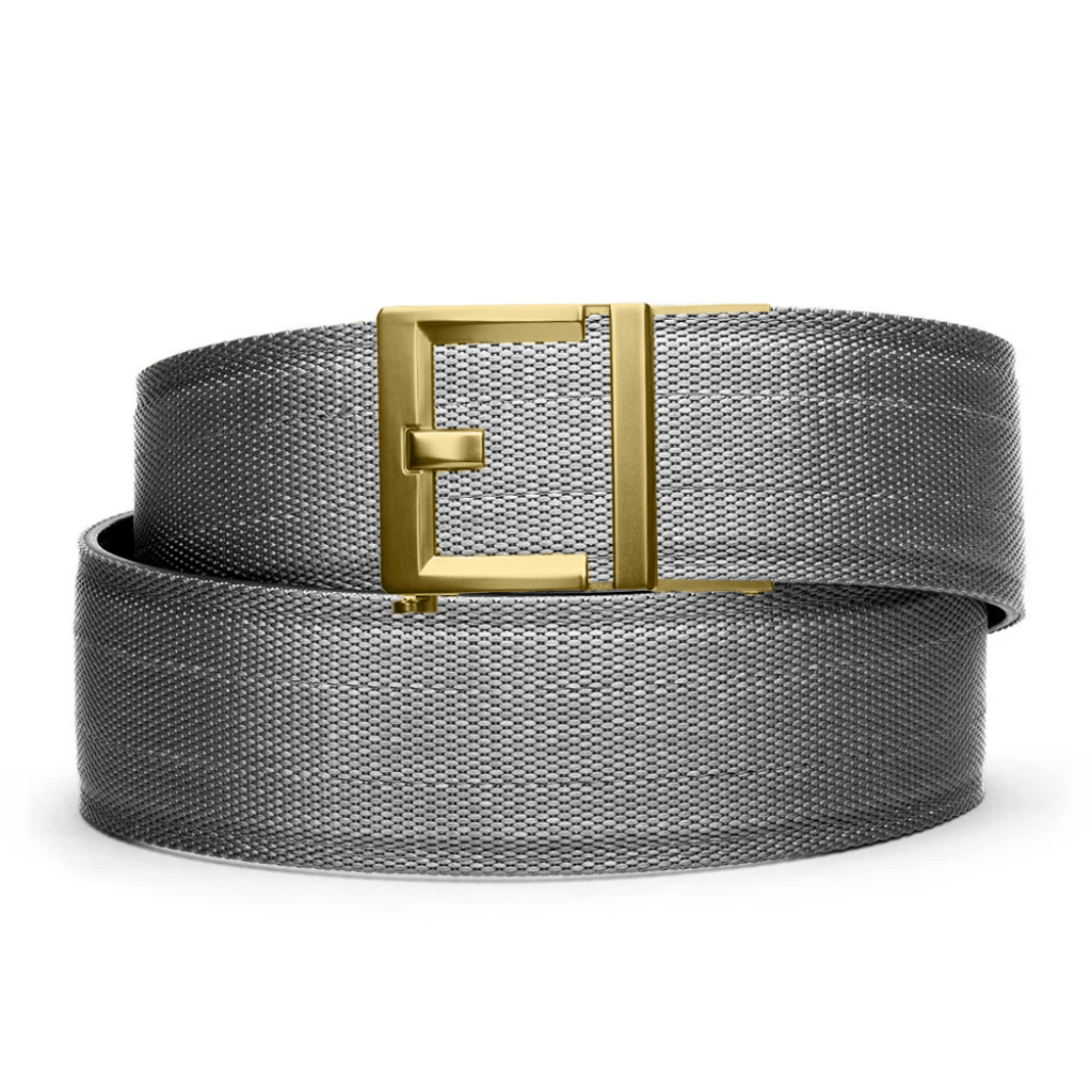 Kore Essentials offers a wide variety of heavy-duty ratcheting buckles designed to work with our gun belts. Buckles are constructed of either high-grade, zinc alloy, with an electroplated gunmetal, brass, nickel or black powder-coat finish, or solid stainless steel (X3 Buckle is nickel free). The buckle mechanism features our Kore designed and patented, spring-loaded system that's durable, reliable and won't stick.