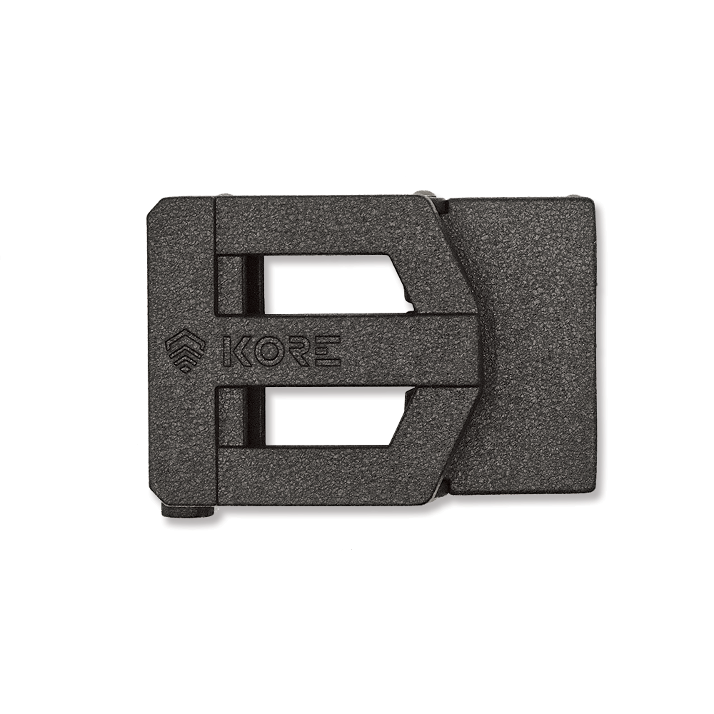 Kore Essentials offers a wide variety of heavy-duty ratcheting buckles designed to work with our gun belts. Buckles are constructed of either high-grade, zinc alloy, with an electroplated gunmetal, brass, nickel or black powder-coat finish, or solid stainless steel (X3 Buckle is nickel free). The buckle mechanism features our Kore designed and patented, spring-loaded system that's durable, reliable and won't stick.