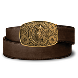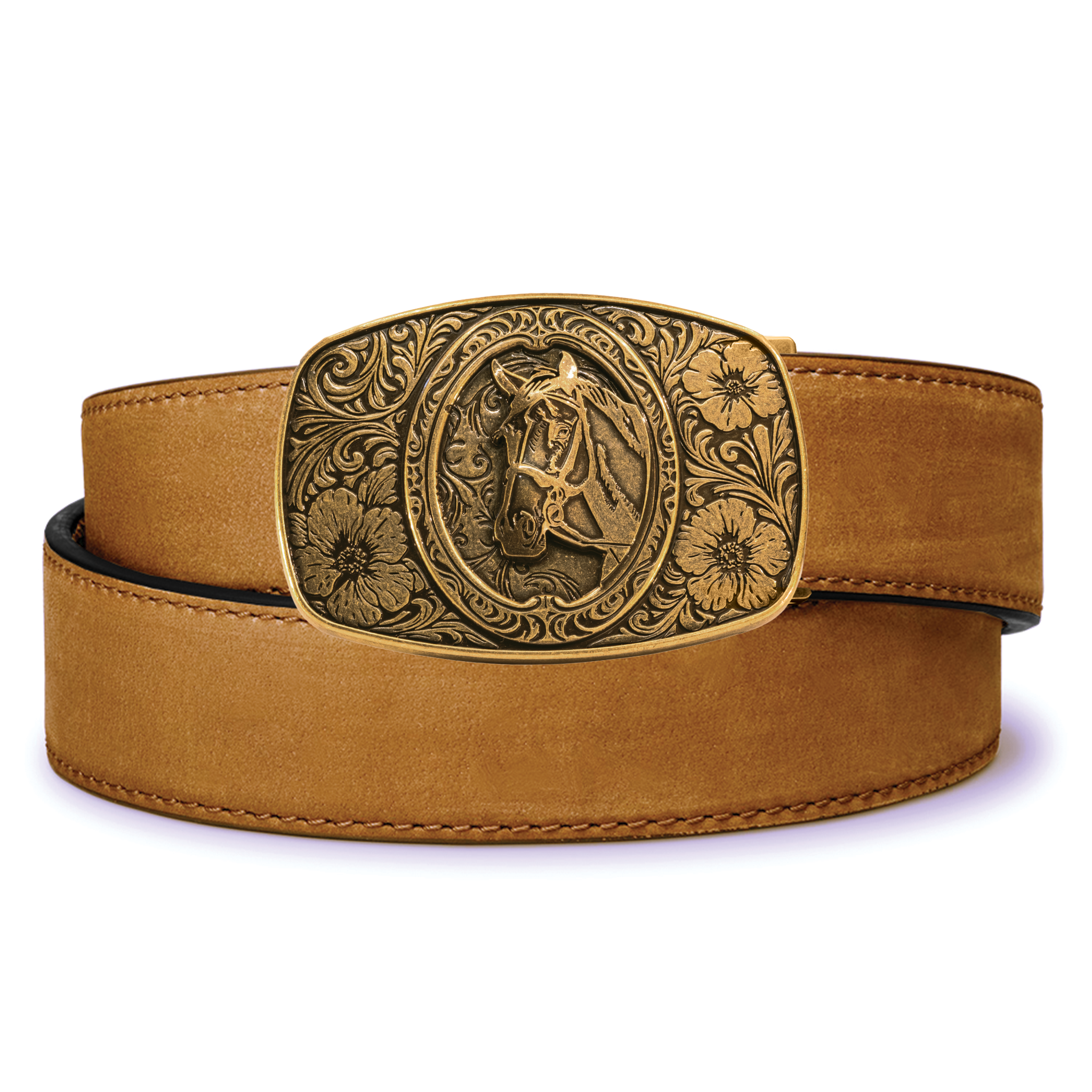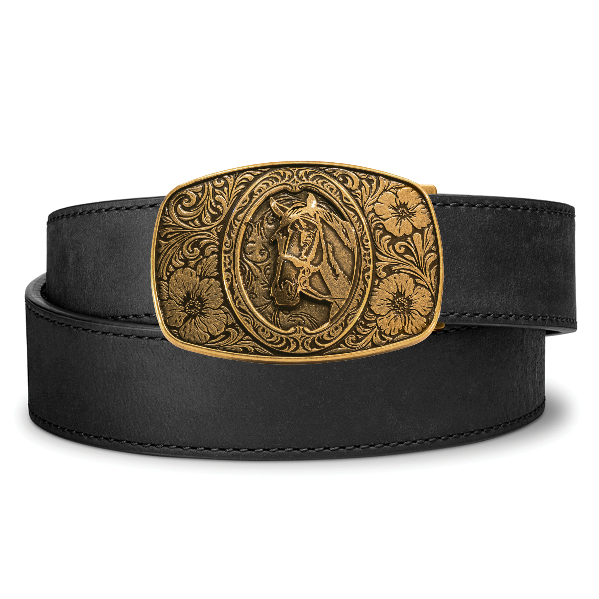 Includes: Horse Antique Brass Buckle, Buffalo Leather Reinforced Gun Belt [1.5"], Hex Wrench & Set Screws