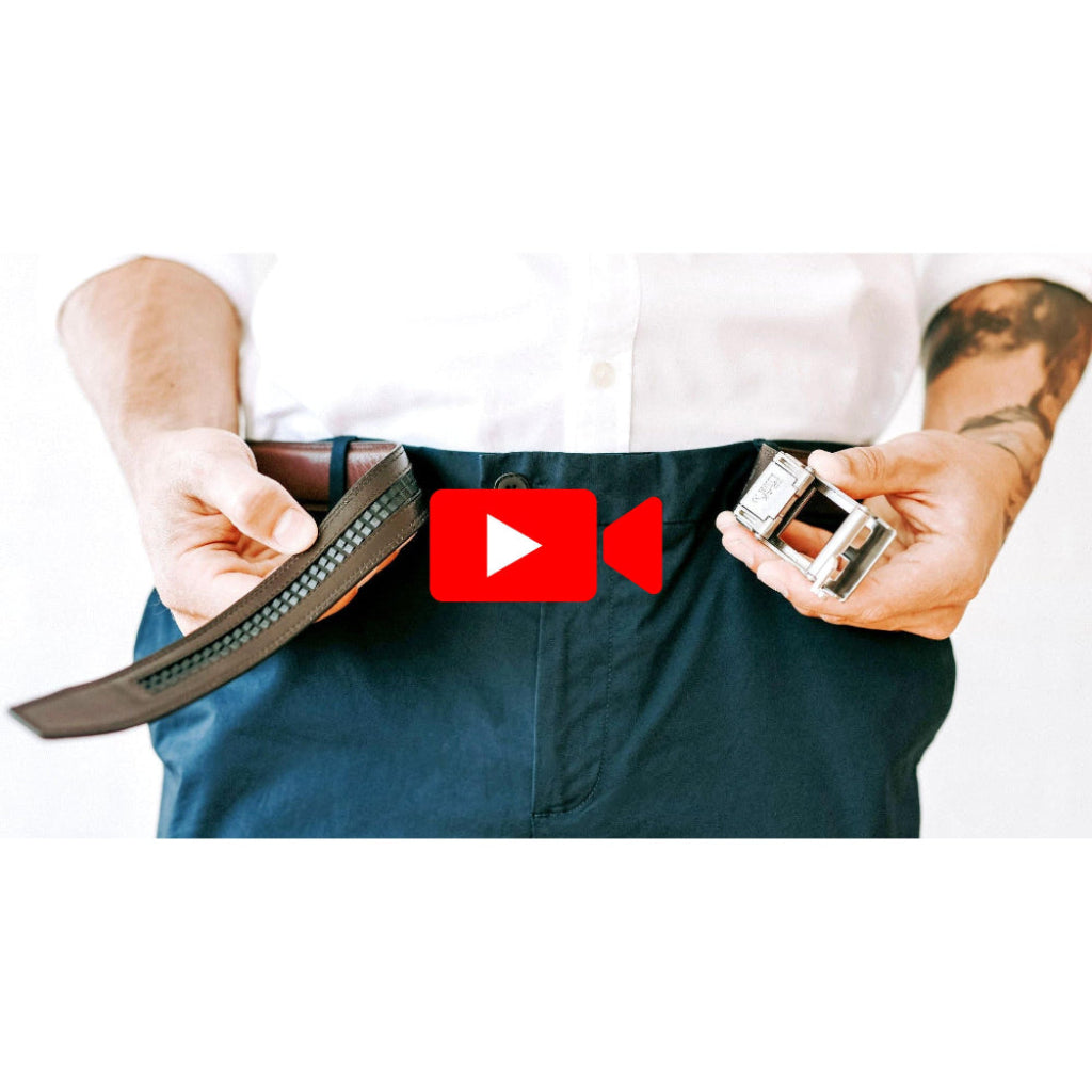 The best fitting, most comfortable belt you’ll ever own. NO belt holes. Instead a hidden track with 40+ sizing points in ¼” increments, means it's 800% more adjustable vs. traditional belt with holes.