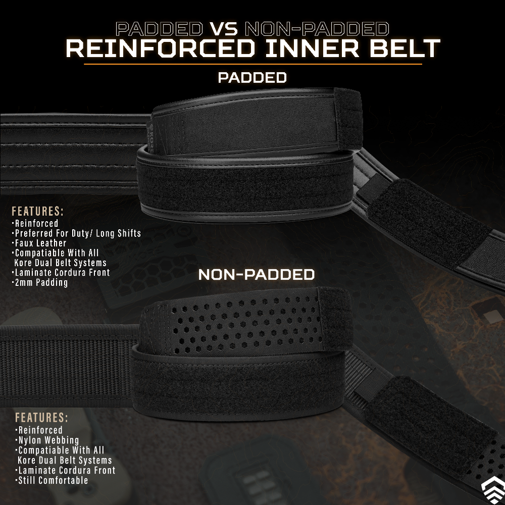 * Kore Inner Liner Belt is designed to work with ONLY Kore Dual Belt Systems. Inner liner belt will NOT work with, nor attach to, Kore 1.5" EDC belts or other companies' outer belts.