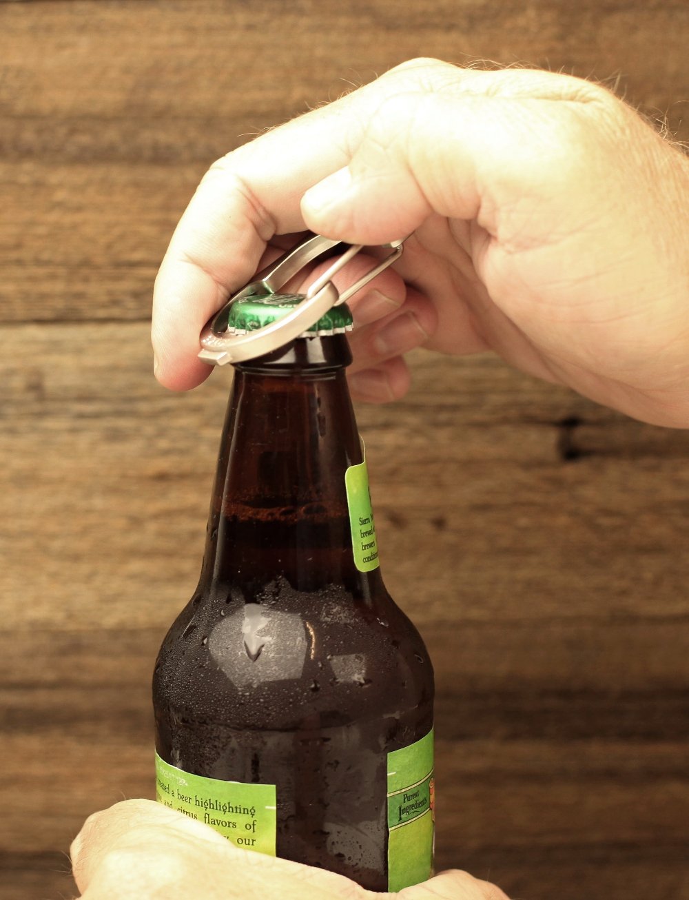 - Constructed of high-grade, zinc alloy (contains nickel) this versatile, compact keychain features several handy tools that most guys need. Including a Bottle opener to easily pop off beer and soda tops, a GoPro wrench tool to tighten and loosen accessory knob, and a flat-head screwdriver for DSLR camera and camera tripods. It clips to your belt loop or a backpack loop. This is not a carabiner and it is not designed for climbing, or rated to support weight.