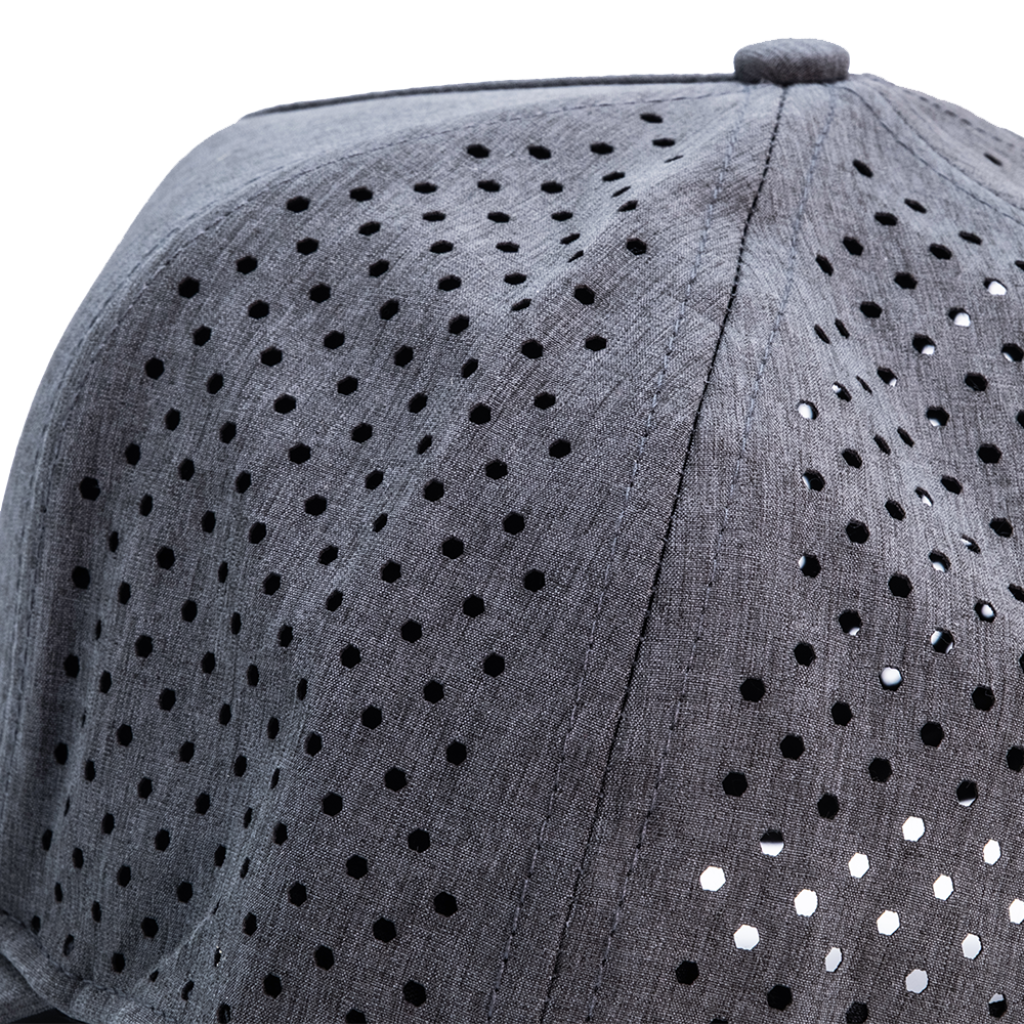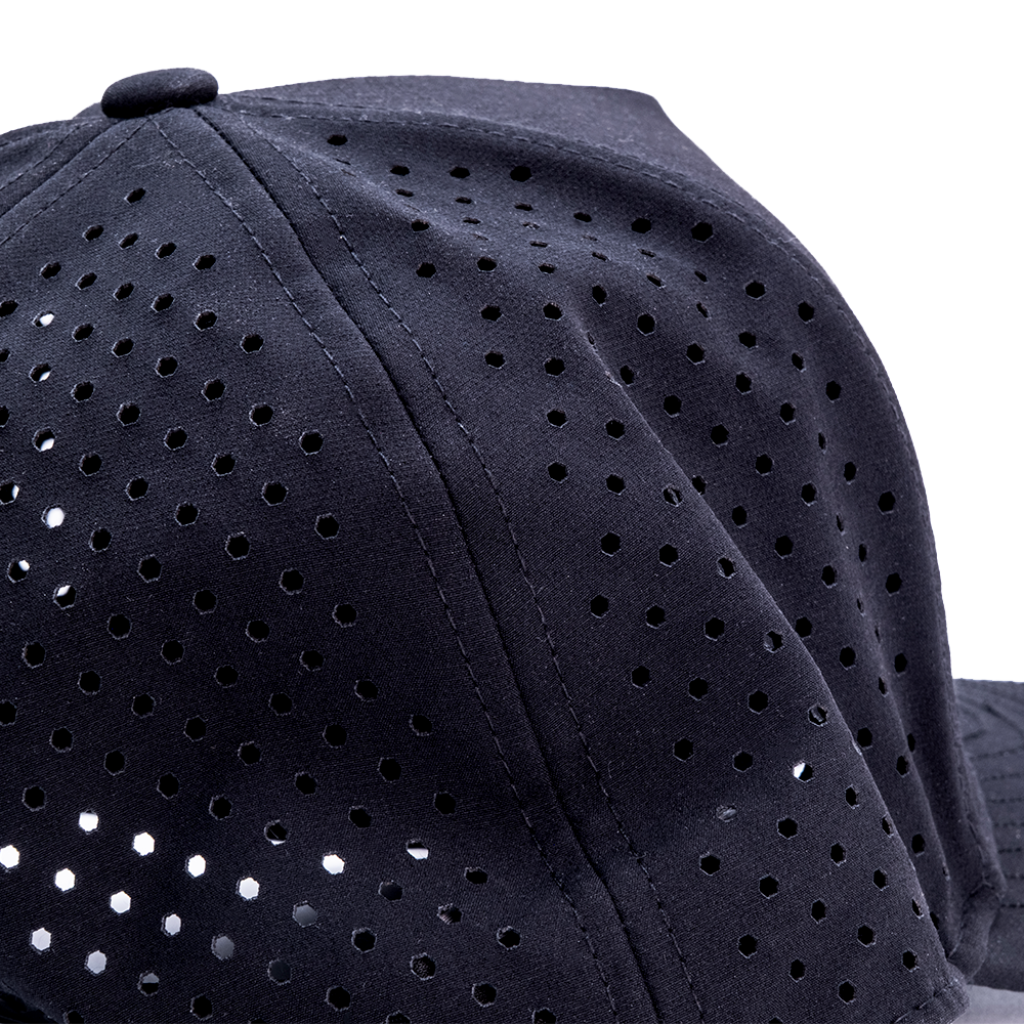 Exterior Crown: Waterproof crown panels with our laser-cut hexes on the side and rear panels for breathability.