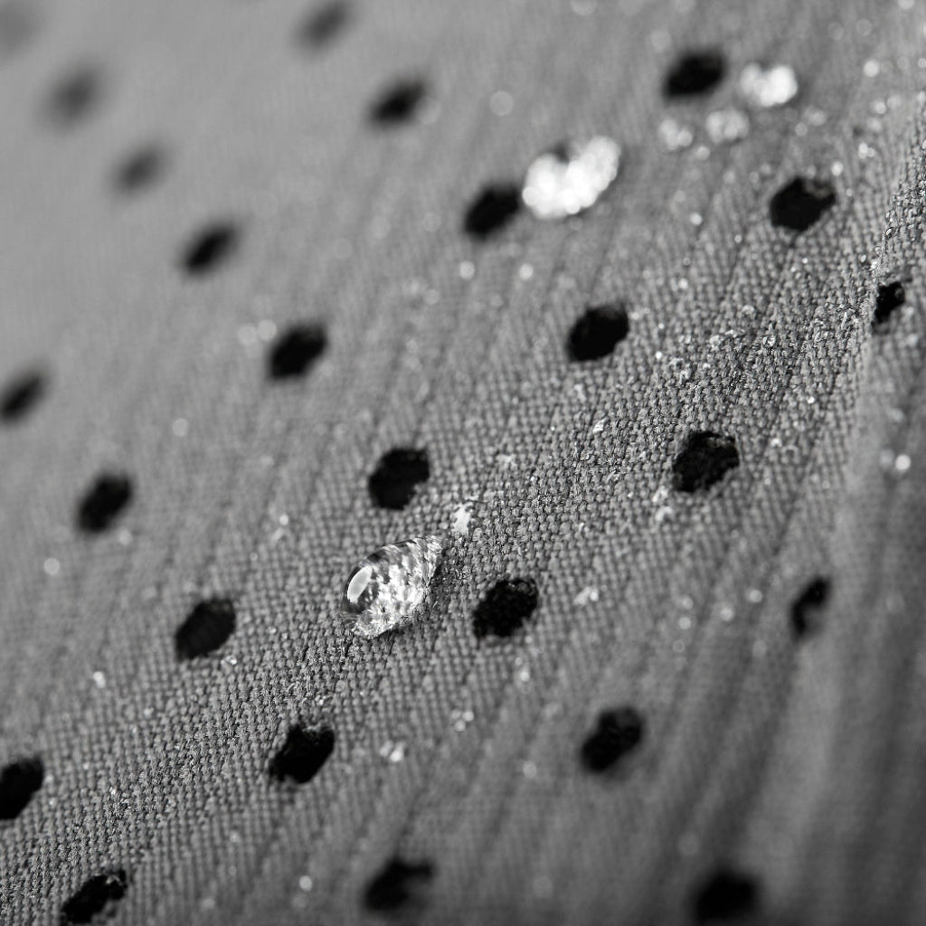 Exterior Crown: Waterproof crown panels with our laser cut hexes on the side and rear panels for breathability.