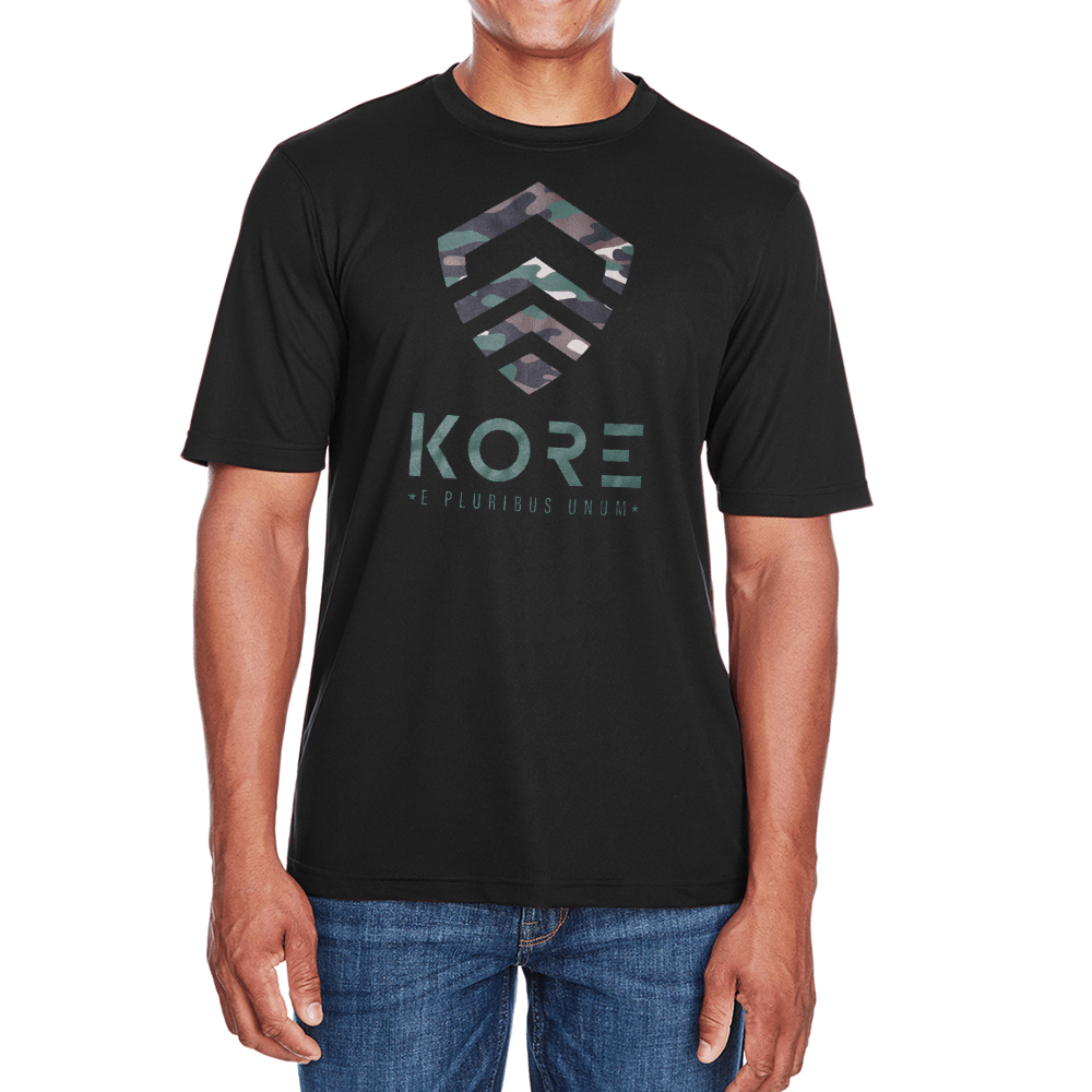 Features Kore Woodland Camo shield on the front with smaller Kore logo on back.
