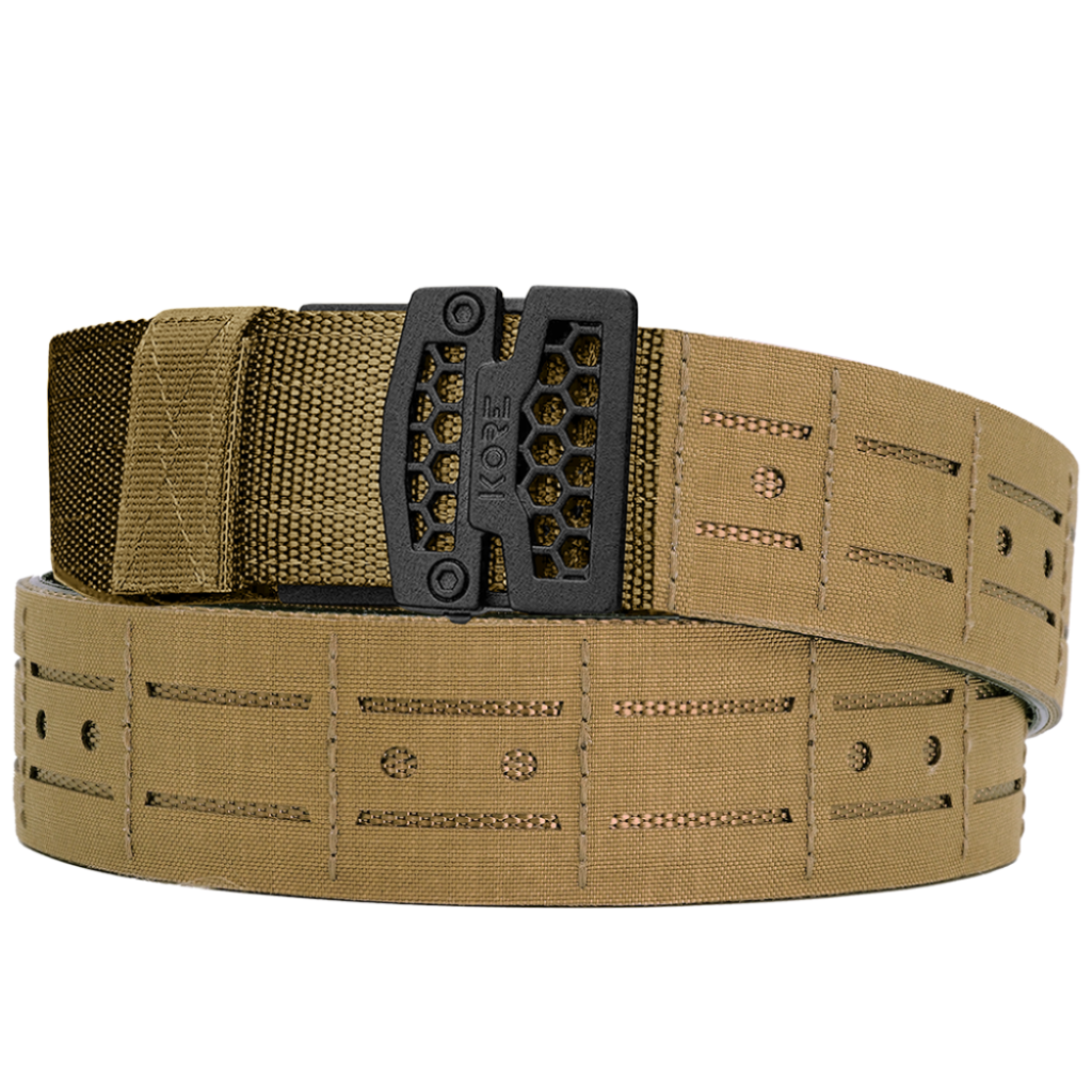 Kore Battle Belts feature a hidden track with 20+ sizing points, letting you adjust in precise 1/4" increments. Need to loosen 1/2" after a big meal or tighten up to secure your gear? Done - without ever removing or undoing the buckle. You can adjust while sitting, running, swimming, even crawling. Simply put, its the best-fitting, most durable battle belt you'll ever wear.