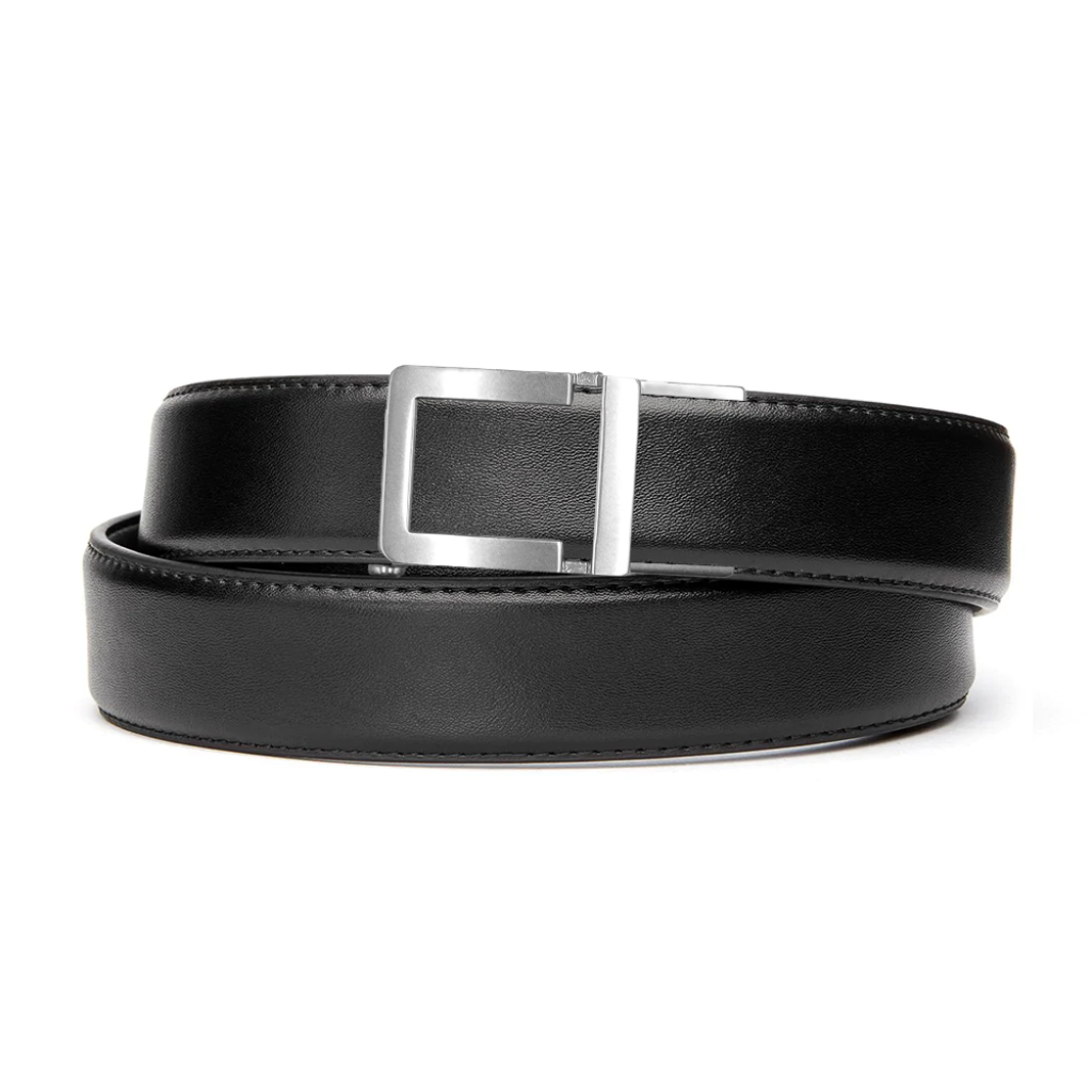 Flexible where you need it and rigid where it matters most, the KORE Essentials gun belt will deliver unmatched firearm support and control while also giving you the freedom to adjust your belt to your exact fit, whenever you need to. Where traditional gun belts utilize belt holes typically spaced an inch apart, each KORE Essentials gun belt features a hidden track sewn into the back of the belt that allows you to ratchet your belt tight in ¼” increments at a time. Each click leads to the perfect fit. Experience the most comfortable, most supportive everyday carry gun belt on the market with the KORE Essentials Quarter Inch EDC gun belt.