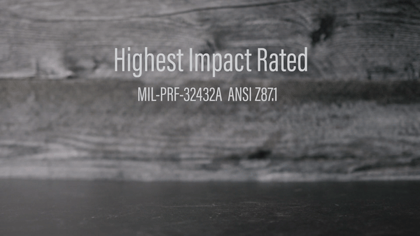• Certified MIL-PRF 32432A Class 1 Ballistic & ANSI Z87.1-2015 Safety Rated Lenses & Frames - the highest ratings available for sunglasses. Independent U.S. Testing Lab fired 0.15 caliber T37 shaped projectiles @ 700 ft/sec., a 1/4" steel ball @ 150 ft/sec., and 17 oz. pointed projectiles dropped from height of 50". Kore Ballistic Smoke-Colored lenses and frames proved to be impenetrable and unbreakable.