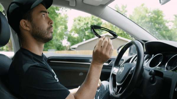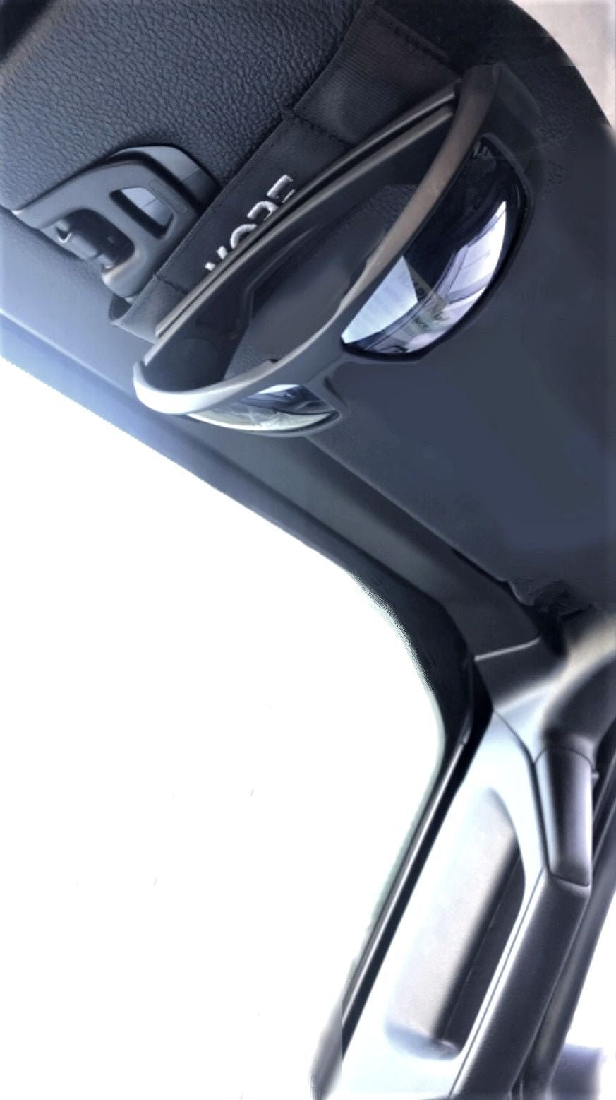 • Magnetic Visor Strap attaches to your car's sun visor, for convenient overhead storage. Click and go.