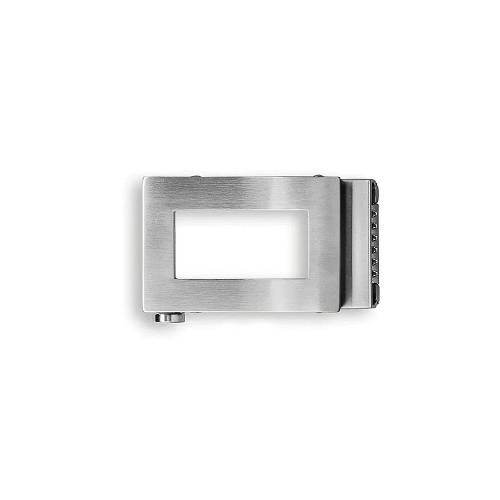 Slim dress belt buckles (3.2 cm x 6 cm) are zinc alloy (contains nickel) with brushed nickel finish. Interchangeable with Kore Slim width fashion buckles and no-hole belts. Pop the buckle off, leave on the leather and pass thru TSA airport security quick and easily. Not interchangeable with standard fashion belts (1-3/8" wide).