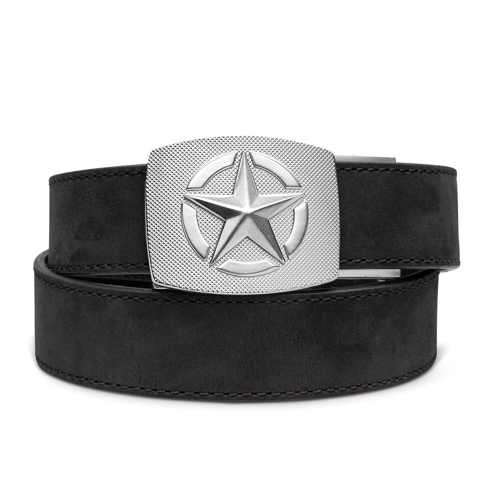 Includes: Star Buckle, Black Buffalo Leather Reinforced Gun Belt, Hex Wrench & Set Screws