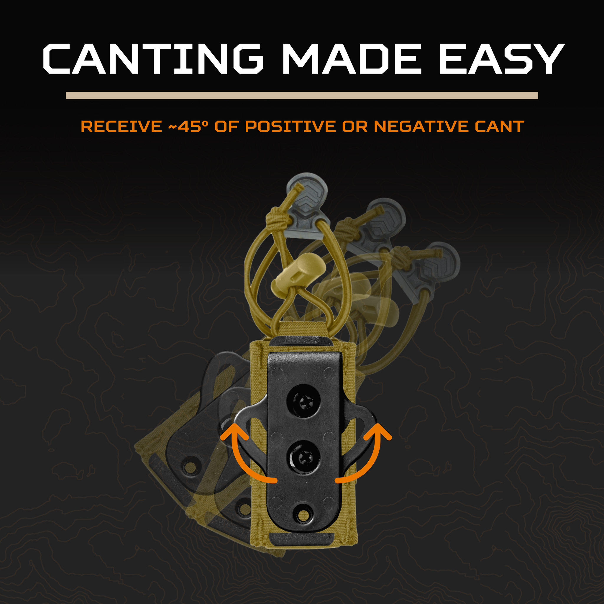 Dial in your perfect draw angle with The Swinger Mount™. Offers 45° of rotation in either direction - whether you're running single or double pistol mag pouches. Designed for speed, flexibility and simplicity.