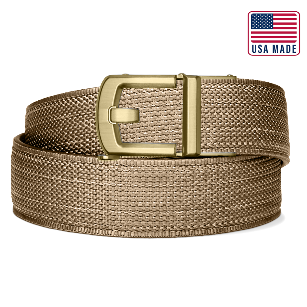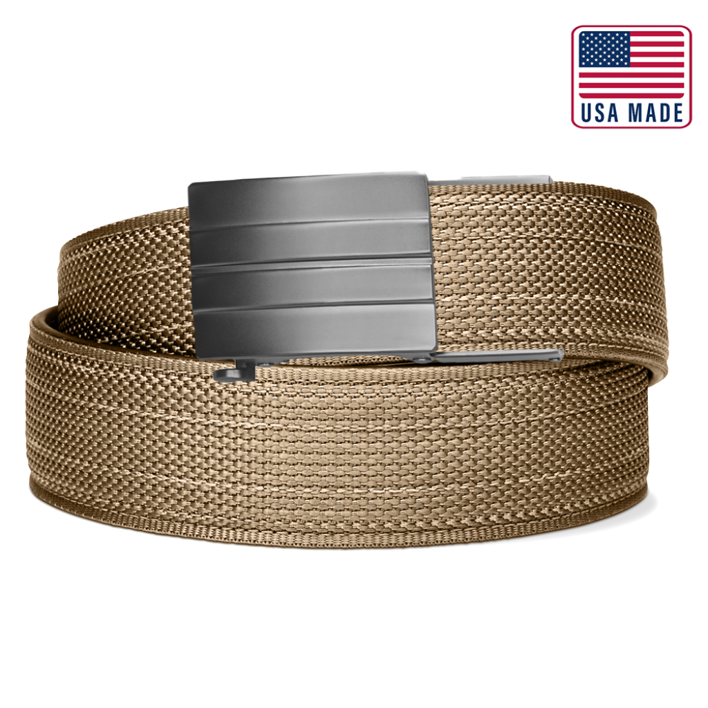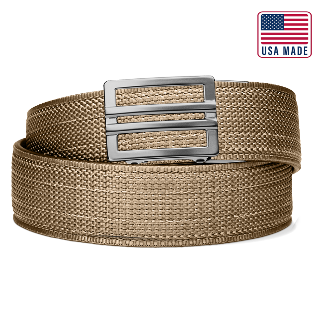 Includes: X Series Buckle, USA Made Tan 499 Tactical Nylon Gun Belt 1.5", Tip Keeper, Hex Wrench & Set Screws